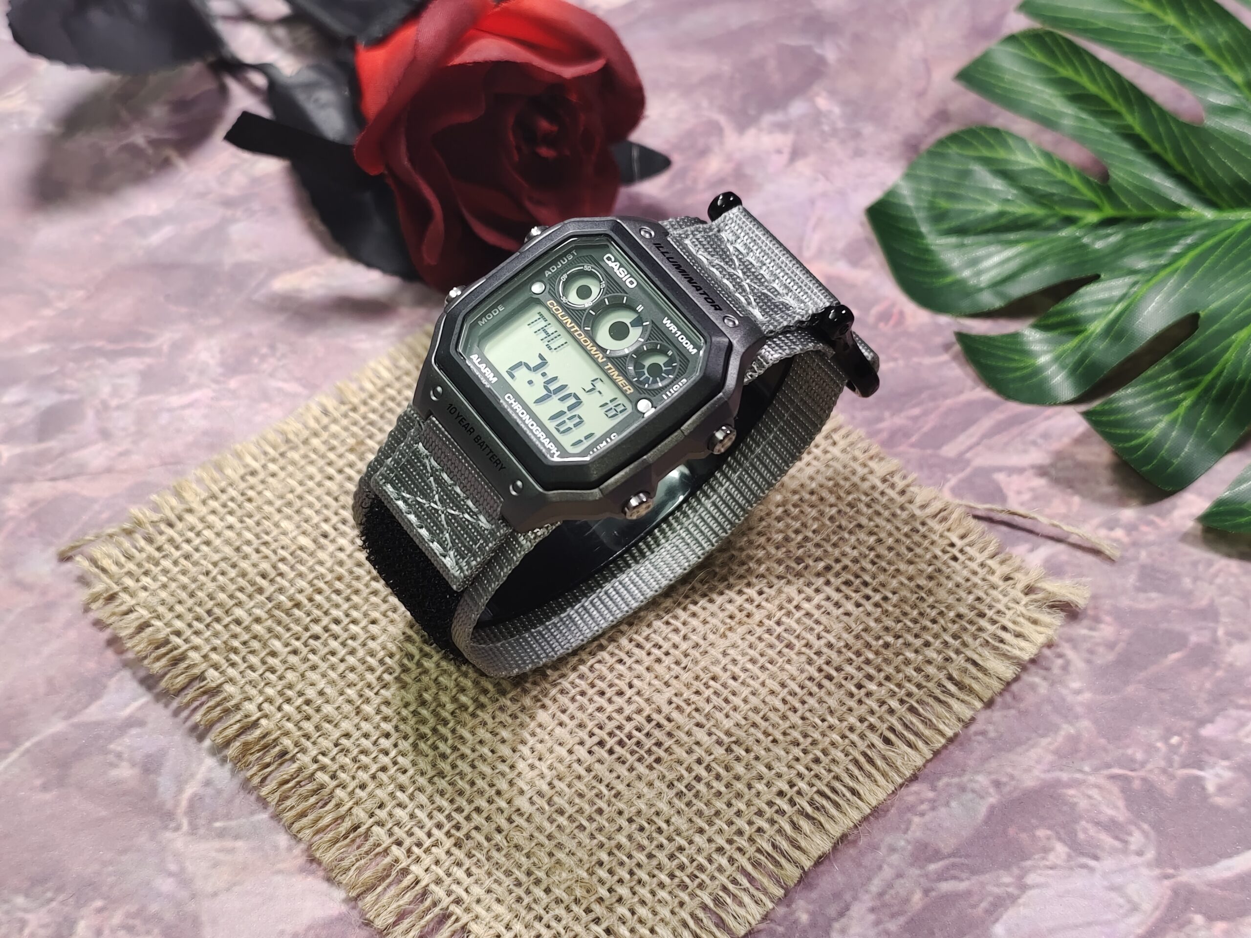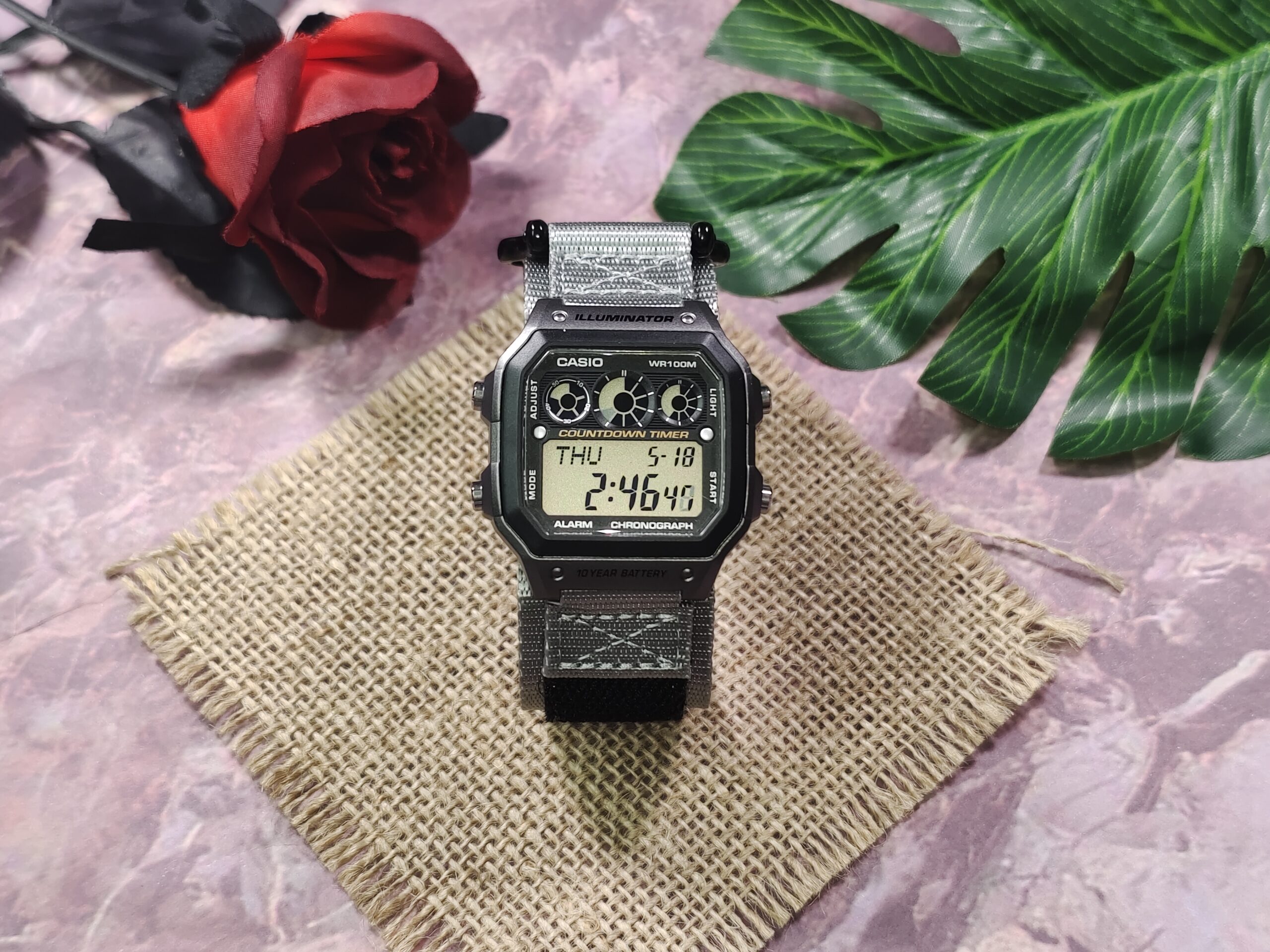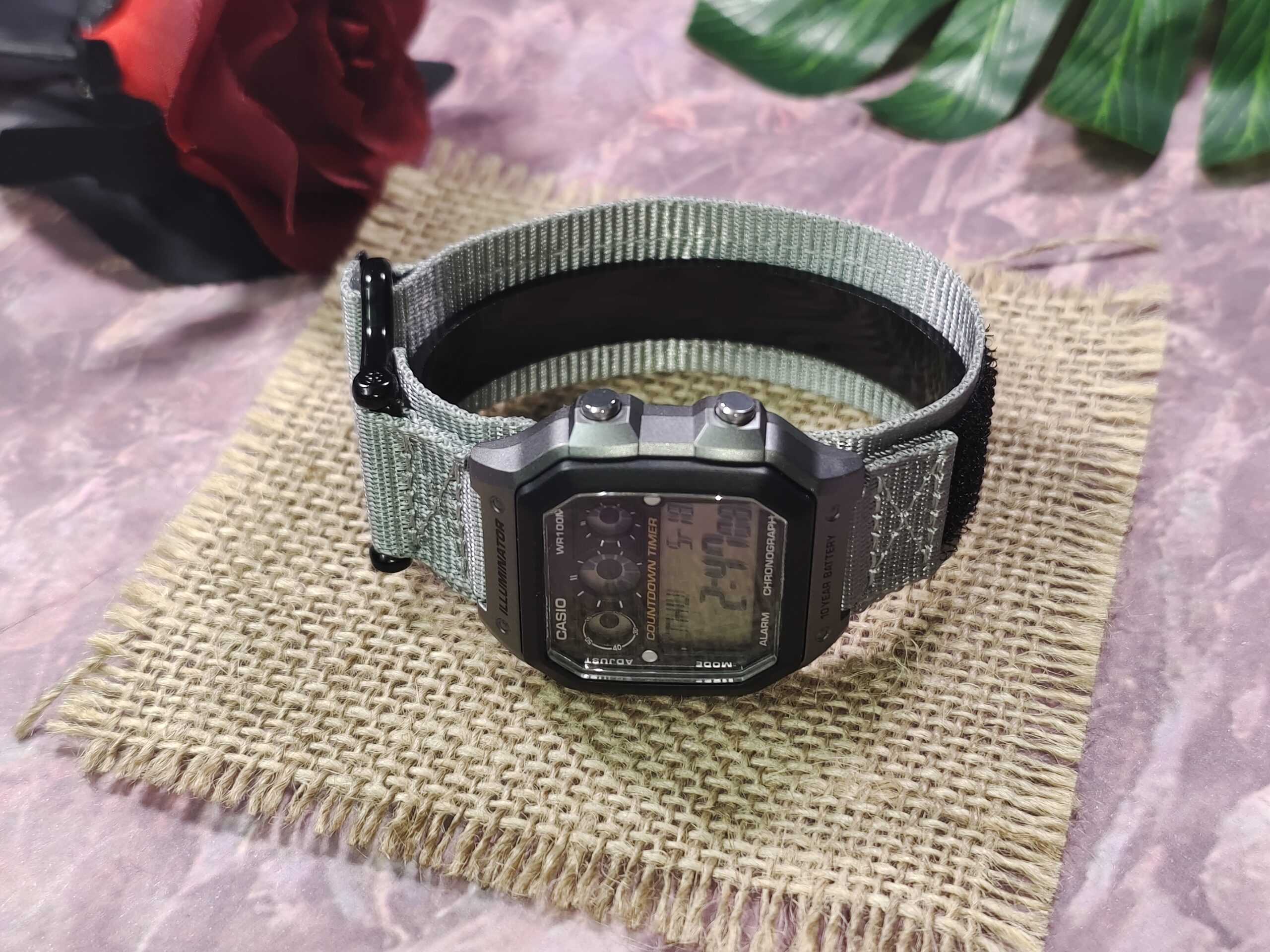 AE-1300 Casio Royale Mod – Steel Gravel Grey Nylon Strap